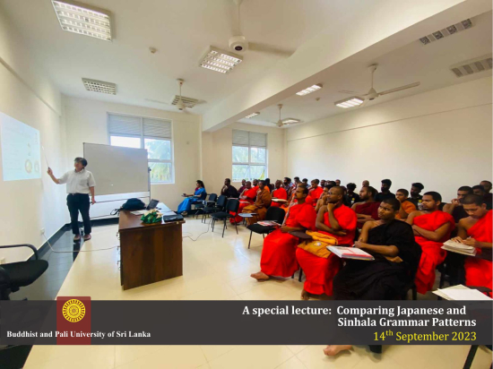 On the 14th of September 2023, Professor Tetsuya Miyagishi, representing Yasuda Women’s University in Japan, delivered a lecture titled "Comparing Japanese and Sinhala Grammar Patterns" at the Buddhist and Pali University. This lecture was designed to cater to students in their 1st, 2nd, and 3rd years who are studying Japanese as a main subject.